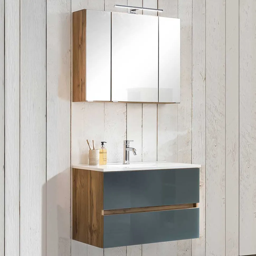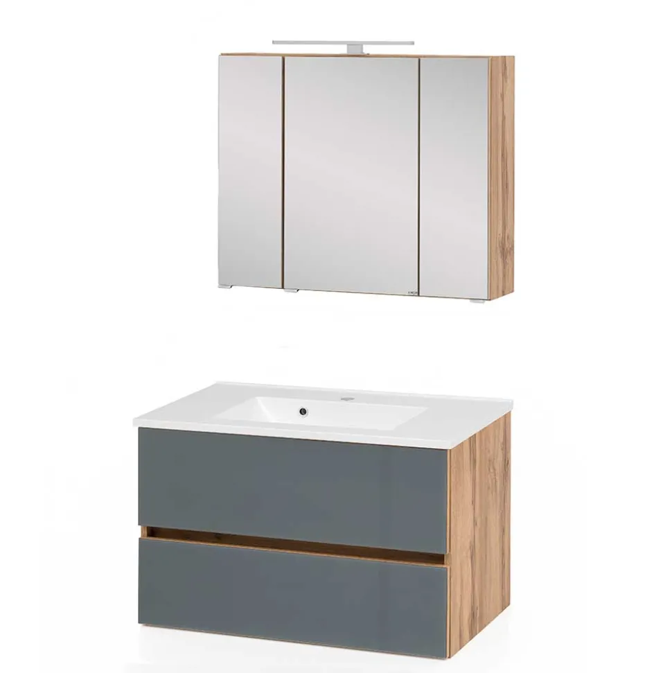 - Elegantes Waschtisch Set in Grau und Wildeichefarben