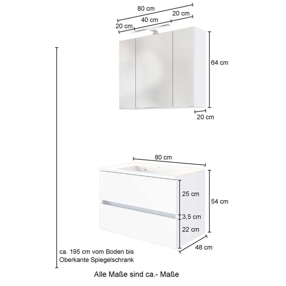 - Maße mit Aufbauleuchte (BxHxT): 80×67,5×28 cm
