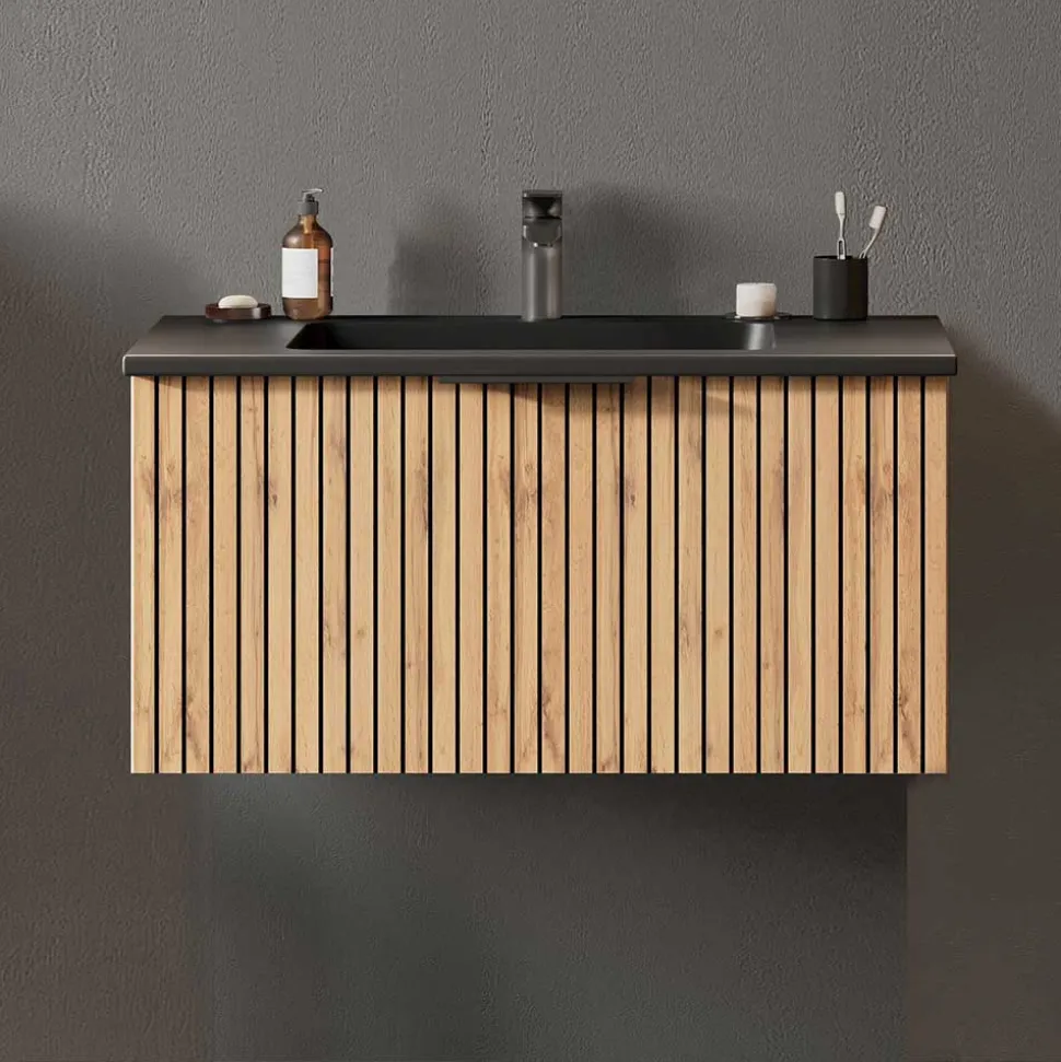 - Super Waschtisch in Wildeichefarben und Schwarz