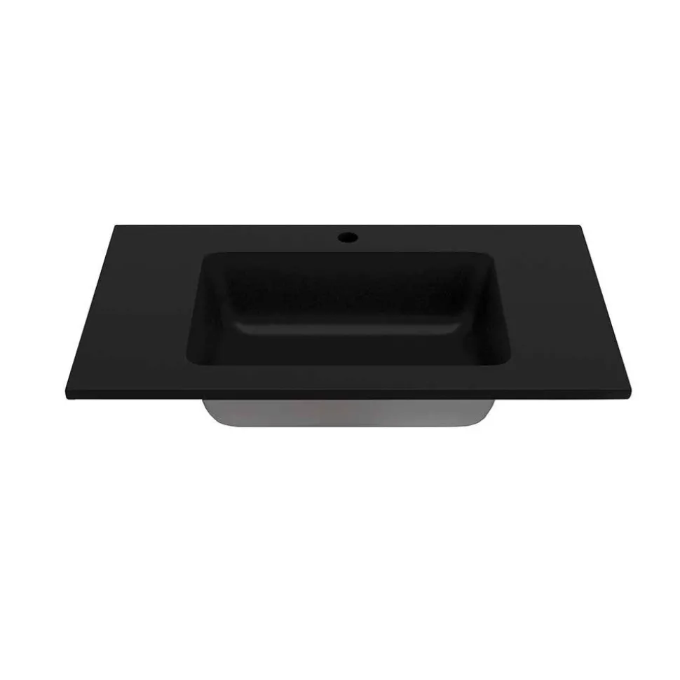 - Mineralguss-Waschbecken in Schwarz matt, Maße (BxHxT): 80x2x47 cm, Innenmaße (BxHxT): 48x13x32 cm