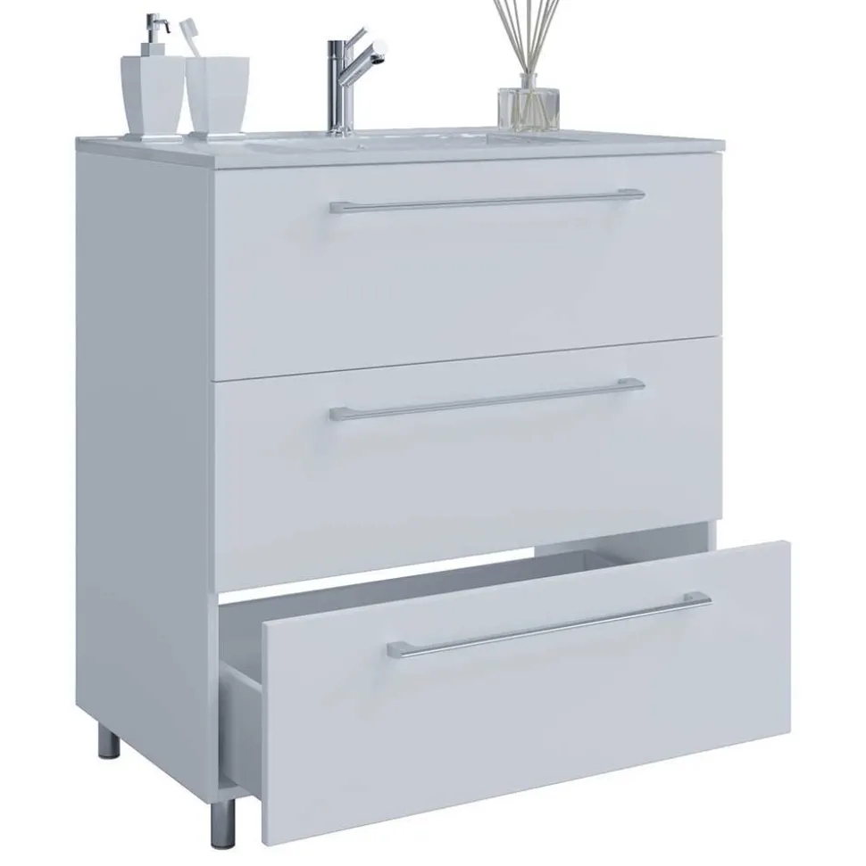 - Weißes Keramik Waschbecken mit seitlichen Ablagen