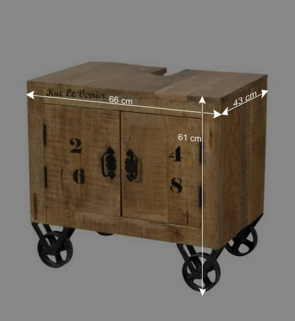 - Rustikaler Waschbeckenunterschrank in Mangoholz Naturfarben