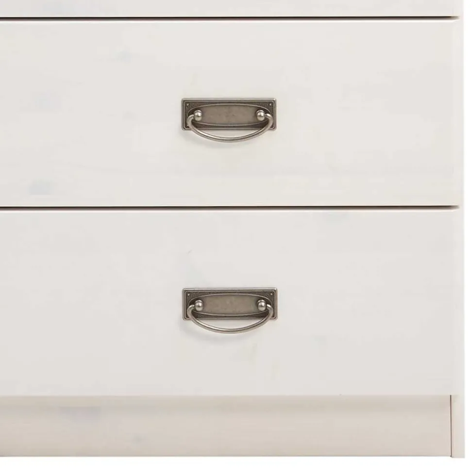 Die Kommode besteht aus einer sorgfältigen Kombination von Sperrholz für die Schubkastenrahmen, -böden und die Rückwand, sowie massivem Kiefernholz für den Rest. Kiefernholz ist nicht nur für seine Robustheit und Langlebigkeit bekannt, sondern auch für seine ansprechende Maserung, die jedem Möbelstück einen einzigartigen Charakter verleiht.