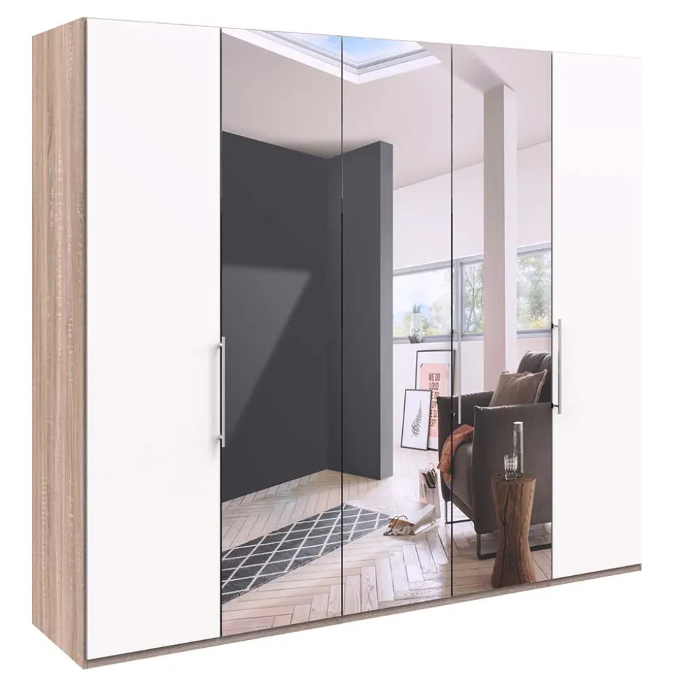 - Attraktiver Kleiderschrank in Weiß und Eiche Sägerau