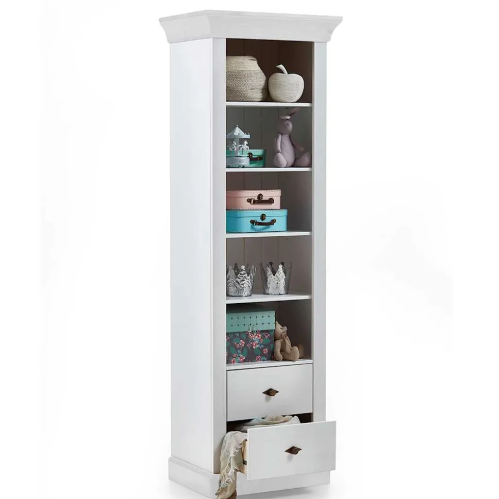 Hergestellt aus massiver nordischer Kiefer, bietet dieses Regal eine Robustheit und Langlebigkeit, die Sie spüren können. Nordische Kiefer ist bekannt für ihre Widerstandsfähigkeit und ihr warmes, einladendes Erscheinungsbild, das jedes Kinderzimmer in eine Wohlfühloase verwandelt.