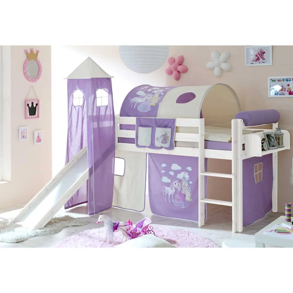 - Erstklassiges Hochbett in Weiß, Lila und Cremefarben