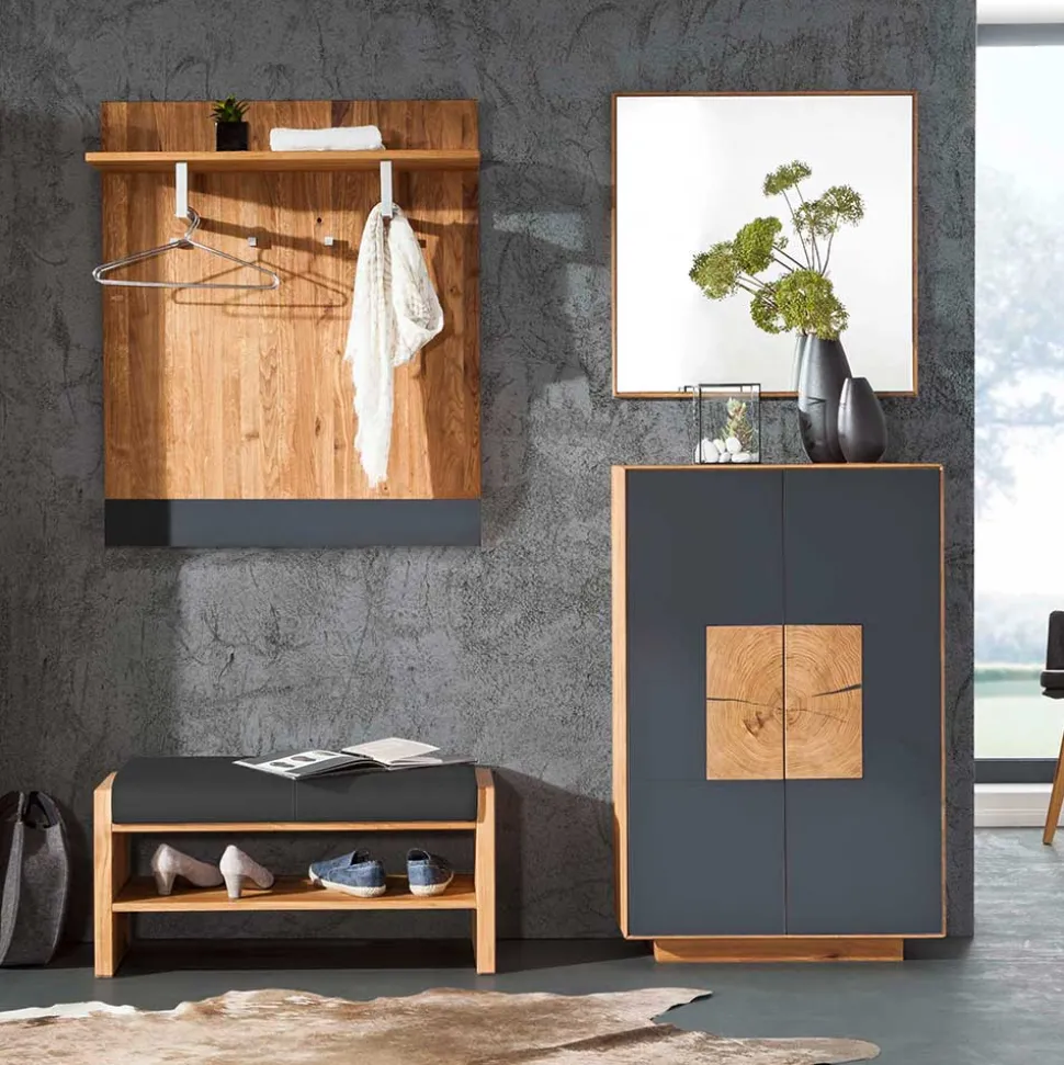 Entdecken Sie das vierteilige Garderoben-Set „Mandrey“ – eine perfekte Kombination aus modernem Design und herausragender Handwerkskunst. Hergestellt in Deutschland, ist dieses Set ein wahres Juwel für Ihre Diele. Lassen Sie sich von den Details verzaubern und tauchen Sie ein in eine Welt des stilvollen Wohnens.
