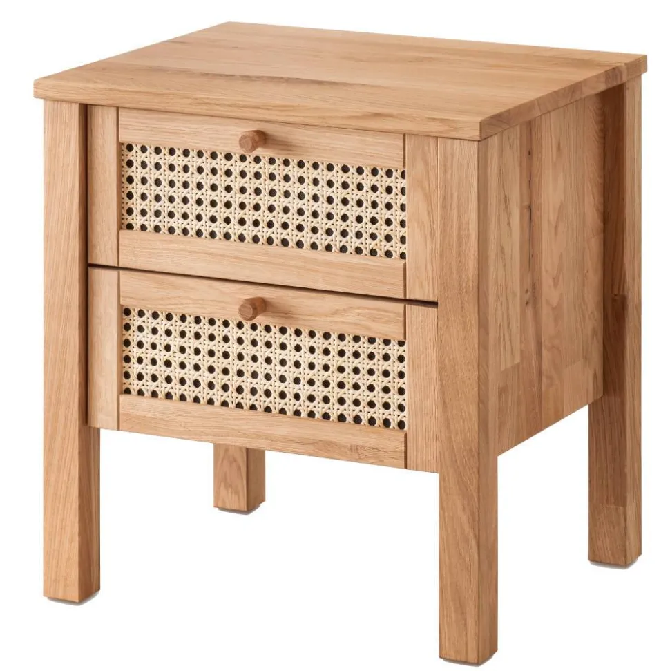 Entdecken Sie die Wildeiche Nachtkommode „Ambrosso“ – ein echtes Schmuckstück für Ihr Schlafzimmer. In den warmen, natürlichen Tönen von Wildeiche und Beige gehalten, fügt sich das Möbelstück perfekt in jeden Raum ein und sorgt für eine angenehme Atmosphäre. Die Kombination aus Massivholz und Peddigrohr im ansprechenden Wiener Geflecht Stil verleiht der Kommode einen besonderen Charme, der sich ideal in ein modernes Skandi-Design integriert.
