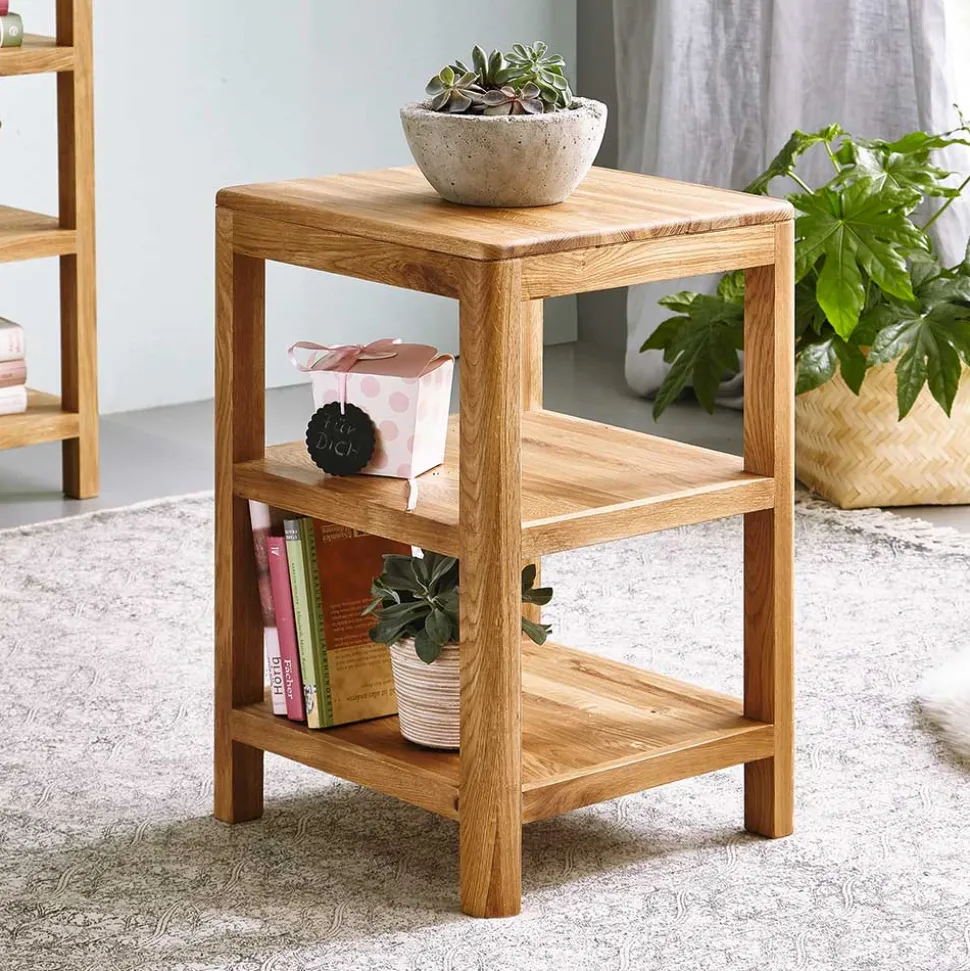 Ob im Wohnzimmer, Schlafzimmer, Flur oder Arbeitsbereich – „Uvinessa“ passt überall hin. Mit einer Breite von 40 cm, einer Höhe von 60 cm und einer Tiefe von 40 cm ist dieses Möbelstück kompakt genug, um auch in kleinere Räume zu passen, und gleichzeitig großzügig genug, um funktionalen Stauraum zu bieten. Zwei praktische Ablageflächen mit einer Fachhöhe von ca. 20 cm schaffen Platz für Bücher, Dekoration oder Alltagsgegenstände. Die solide Tischplatte mit einer Stärke von 1,5 cm und die massive Zarge von 3,8 cm sorgen für Stabilität, ohne dabei die ästhetische Leichtigkeit zu verlieren.