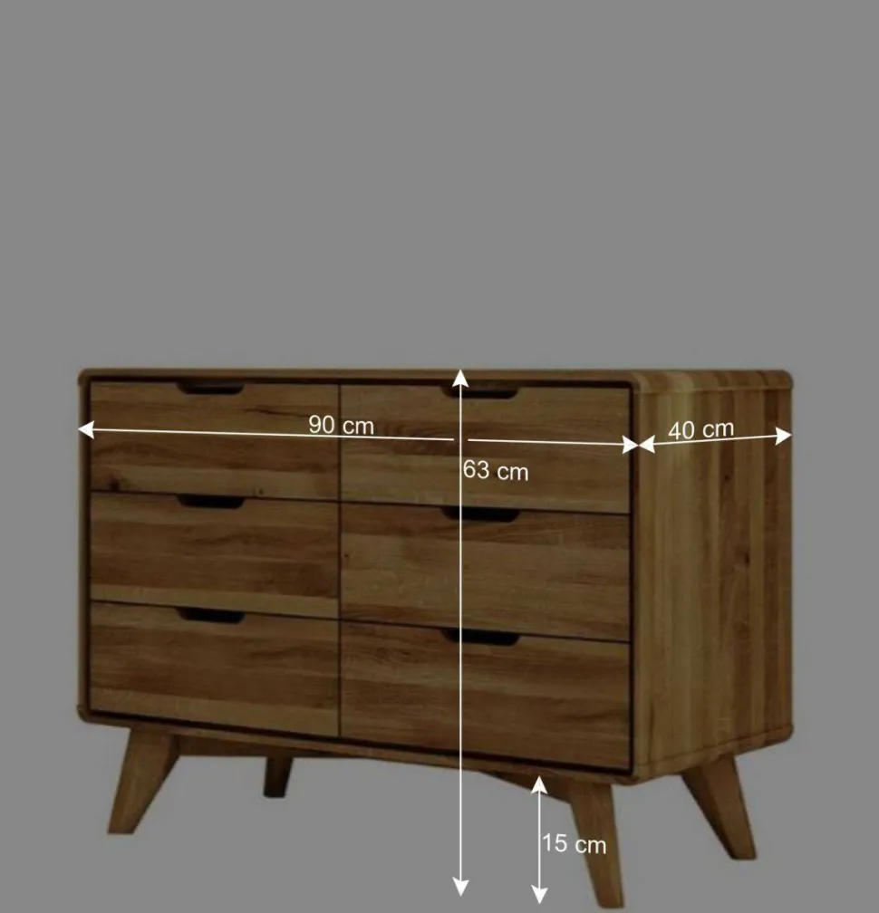 Mit den Maßen von 90 cm Breite, 63 cm Höhe und 40 cm Tiefe bietet die Kommode viel Stauraum. In den insgesamt sechs Schubkästen mit Metallauszug und Soft Close Funktion finden all Ihre Utensilien Platz. Die Soft Close Funktion sorgt dafür, dass die Schubkästen sanft und geräuschlos schließen, während die schmalen und dezenten Grifflöcher ein leichtes Öffnen ermöglichen. Die maximale Belastbarkeit von 5 kg je Schubkasten und 25 kg für die Deckplatte bietet zusätzliche Flexibilität.