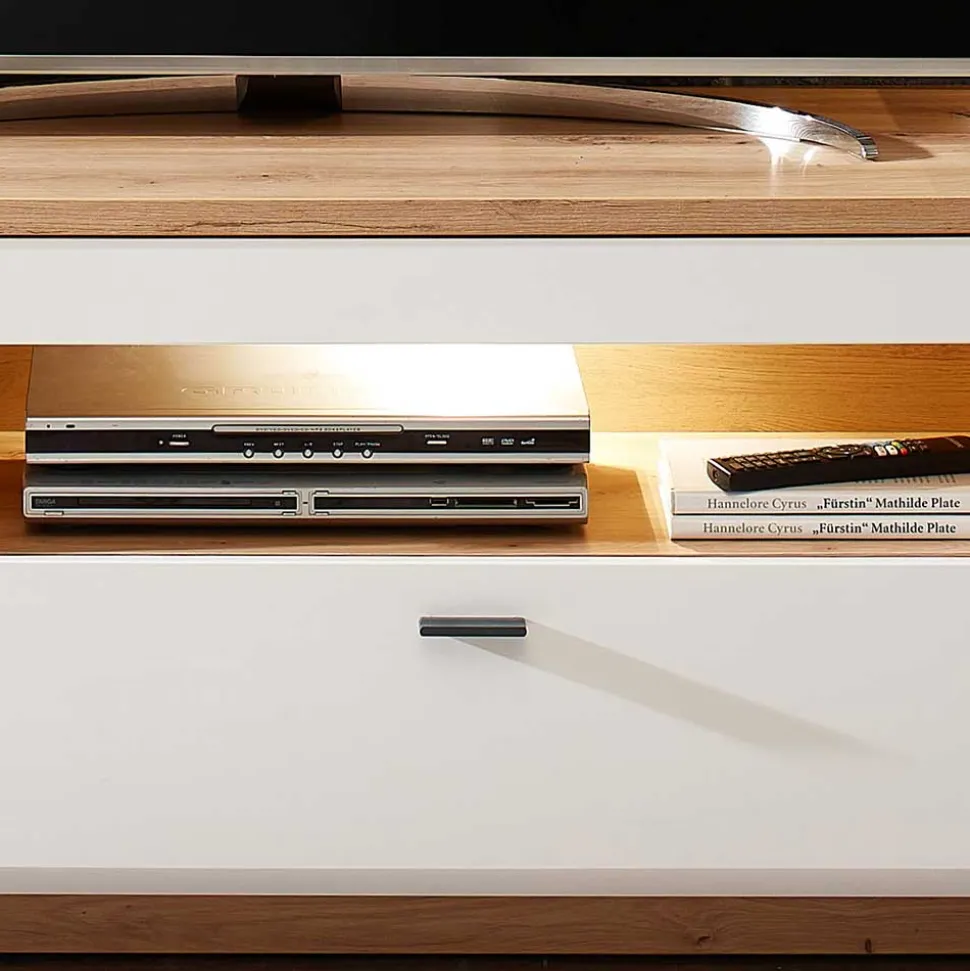 - Trendgerechte Wohnwand in Weiß und Wildeichefarben