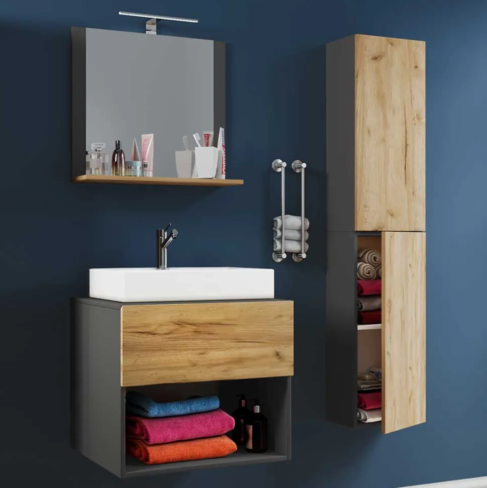 - Komfortables Bad Set in Anthrazit und Wildeiche Honigfarben