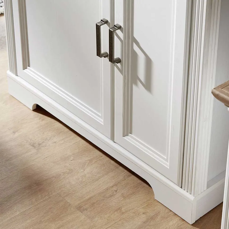 Unsere Möbel sind nicht nur schön anzusehen, sondern auch äußerst funktional. Die Türen verfügen über langlebige Metallbeschläge und eine Dämpfung, die für sanftes Schließen sorgt. Die Schubladen sind mit einem Metallauszug mit Unterflurführung, Selbsteinzug und Soft Close Funktion ausgestattet, was ein geräuschloses Schließen ermöglicht. Die Metall-Bügelgriffe im Antik Look verleihen den Möbeln einen zusätzlichen Charme.