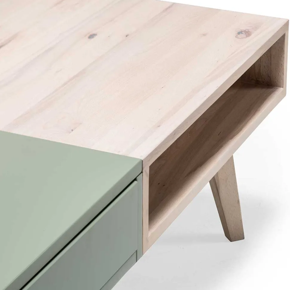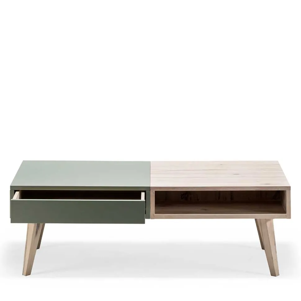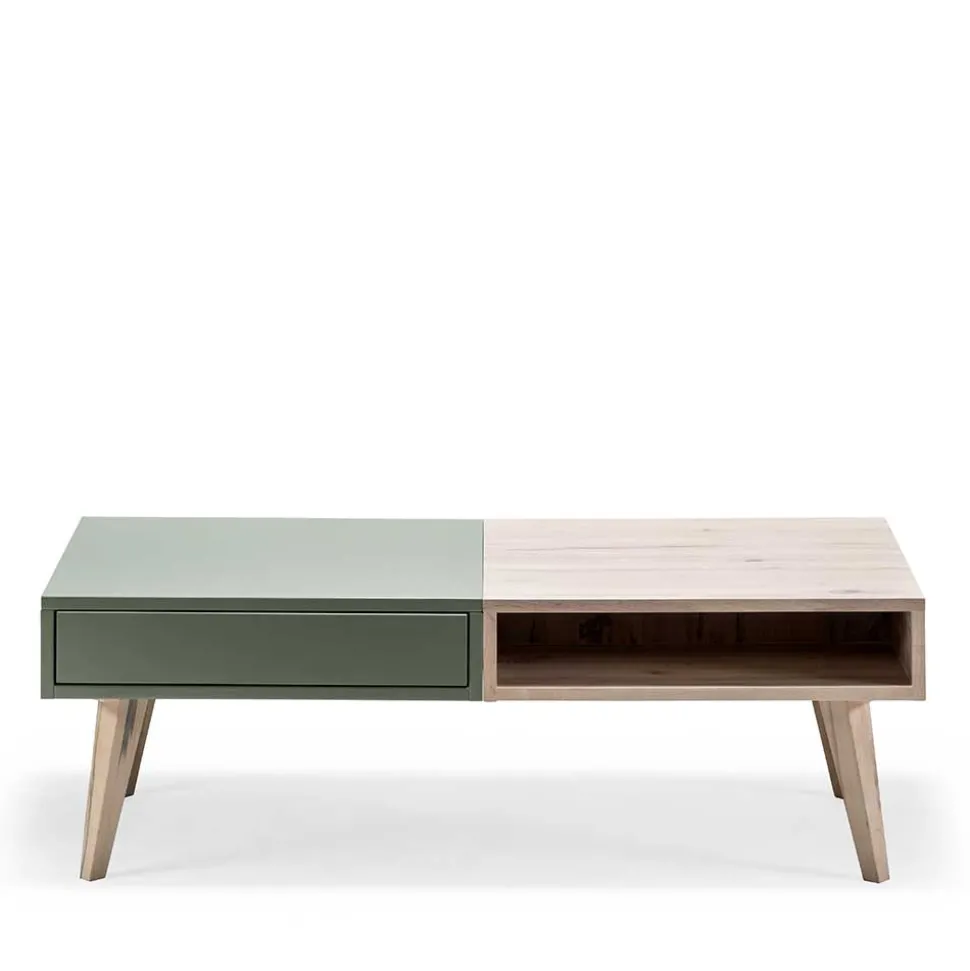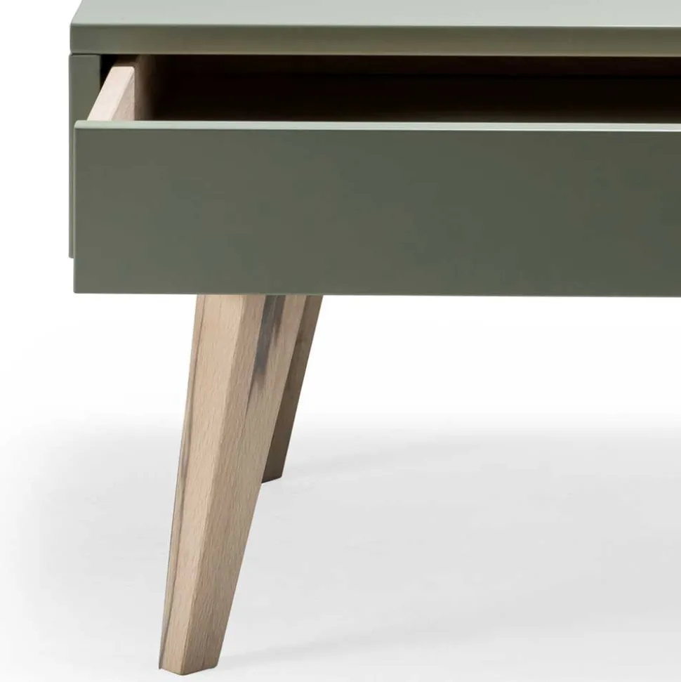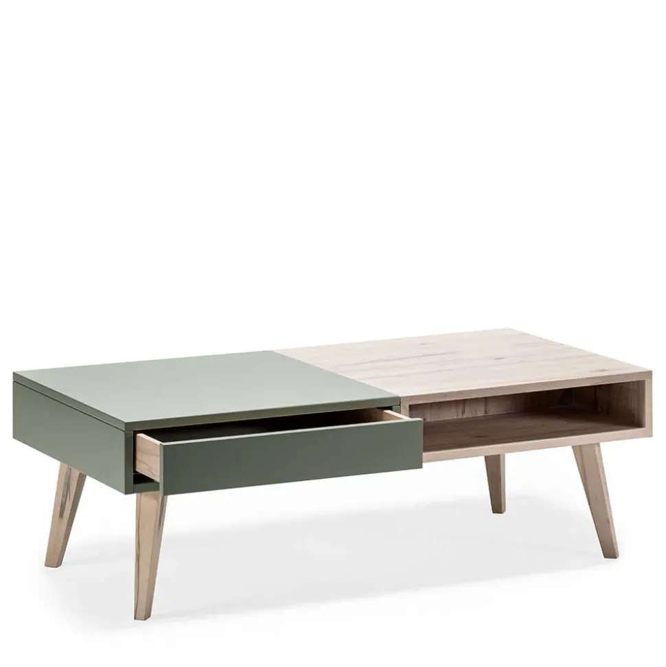 Der Tisch bietet nicht nur eine großzügige Tischplatte, sondern auch praktischen Stauraum. Ein Schubkasten mit gedämpftem Metallauszug und Push-to-open Funktion ermöglicht Ihnen ein sanftes Öffnen und Schließen. Die dezent grifflose Optik verleiht dem Tisch eine moderne Note. Zusätzlich steht Ihnen ein offenes Fach zur Verfügung, in dem Sie Kleinigkeiten griffbereit aufbewahren können.