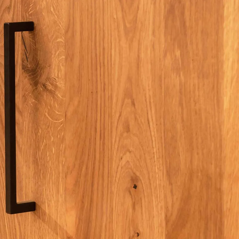 Dieses Sideboard verbindet das angesagte Skandi-Design mit hochwertigen Materialien wie Wildeiche Massivholz und Stahl. Die natürlich geölten Holzoberflächen mit durchgehenden Lamellen verleihen dem Sideboard ein zeitloses Erscheinungsbild und machen es zu einem Blickfang in jedem Wohnraum.