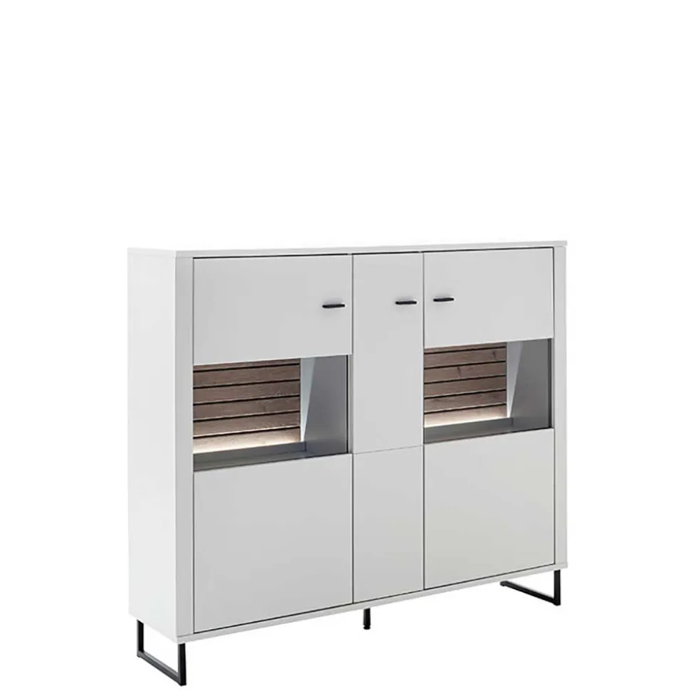 - Schicke Highboard Vitrine in Weiß und Wildeichefarben