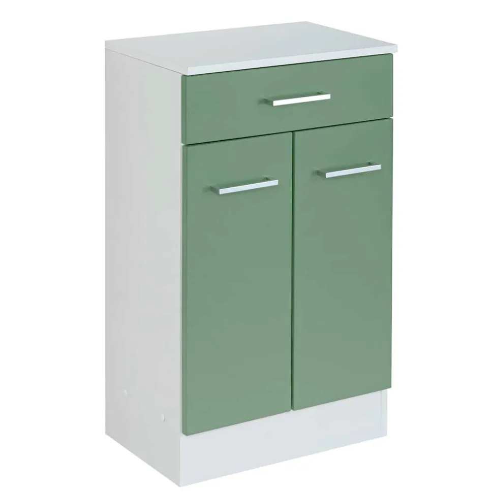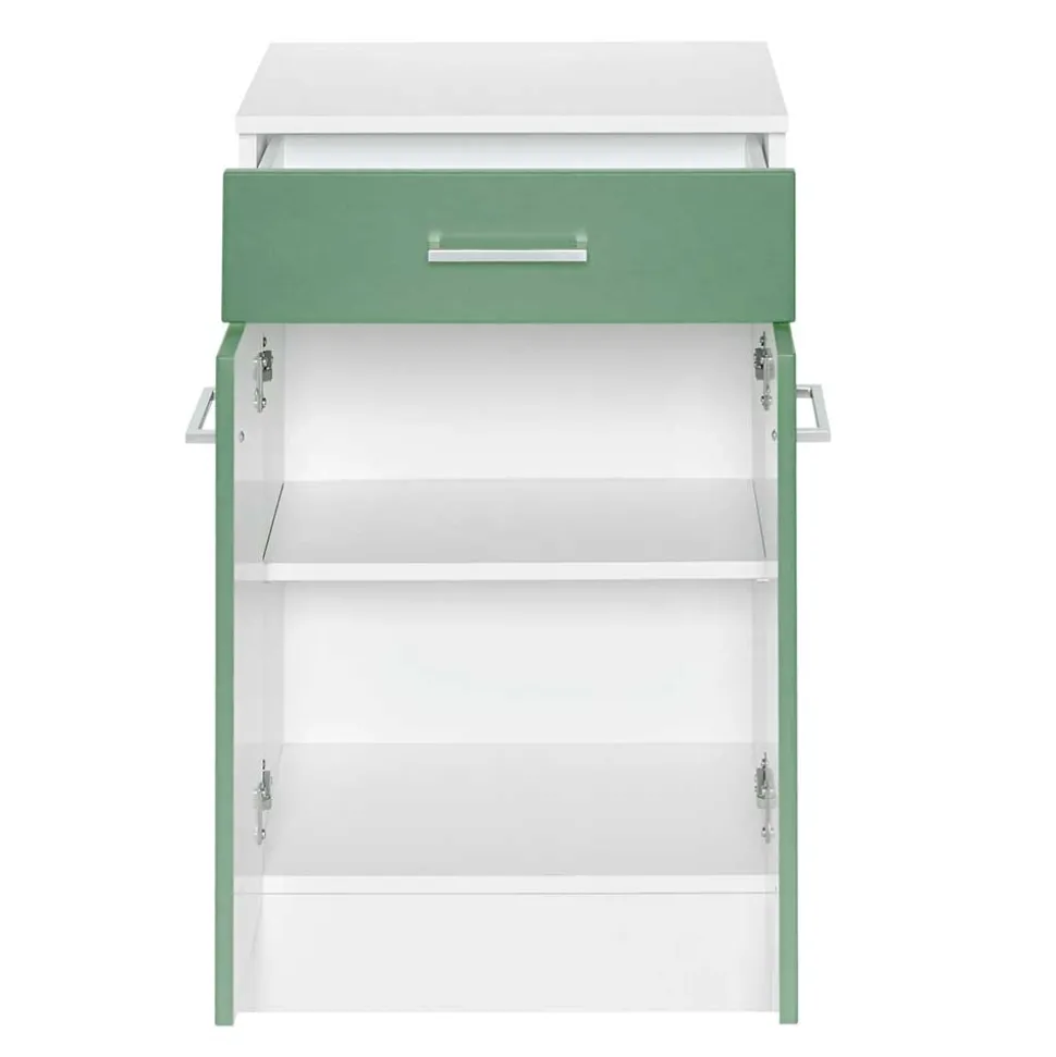 - Korpus melaminbeschichtet in Weiß, Front foliert in Grün