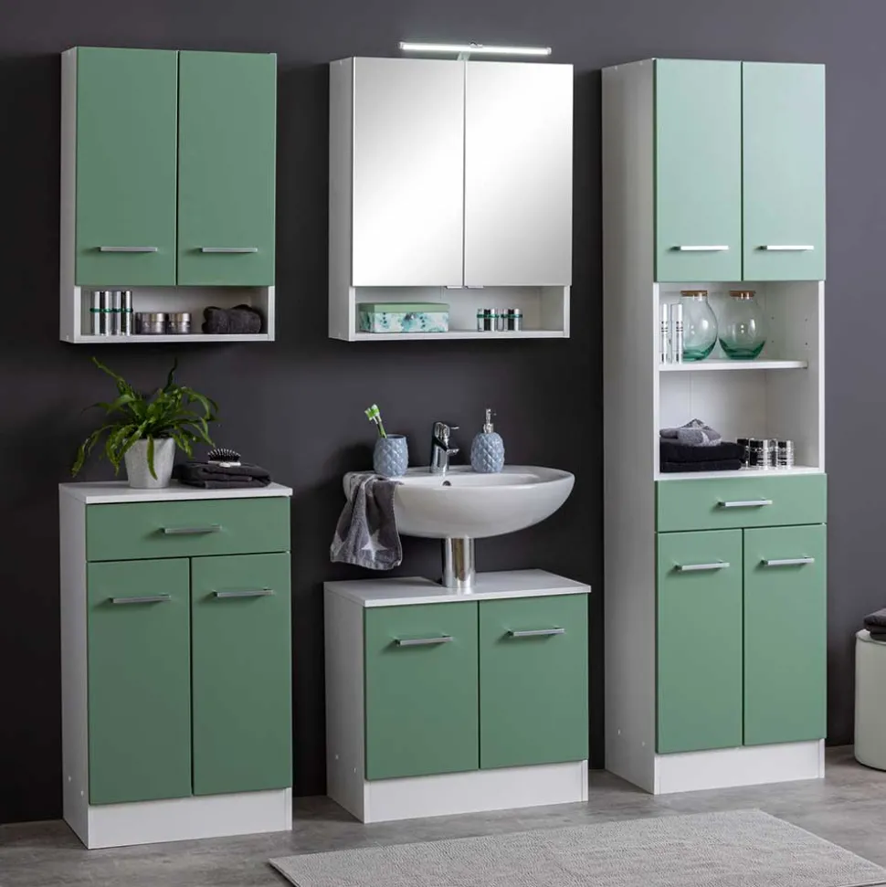 Frische Impulse für Ihr Badezimmer entstehen, wenn klare Linienführung und fröhliche Farbakzente aufeinandertreffen. Beim Bad-Unterschrank „Loenixa“ verschmilzt strahlendes Weiß mit belebendem Grün zu einer Kombination, die Räume heller wirken lässt und eine unverwechselbare Atmosphäre schafft. Das moderne Design interpretiert Minimalismus neu, indem es Schlichtheit mit einer warmen, wohnlichen Note verbindet. Glatte Flächen reflektieren das Licht und sorgen dafür, dass kleine Badezimmer größer erscheinen, während die harmonische Farbgestaltung mit der weißen Rückwand ein Gefühl von Leichtigkeit vermittelt. Dieses Design passt sich verschiedensten Einrichtungsstilen an – ob urban, skandinavisch oder natürlich inspiriert – und bringt einen Hauch von Frische in jeden Morgen.