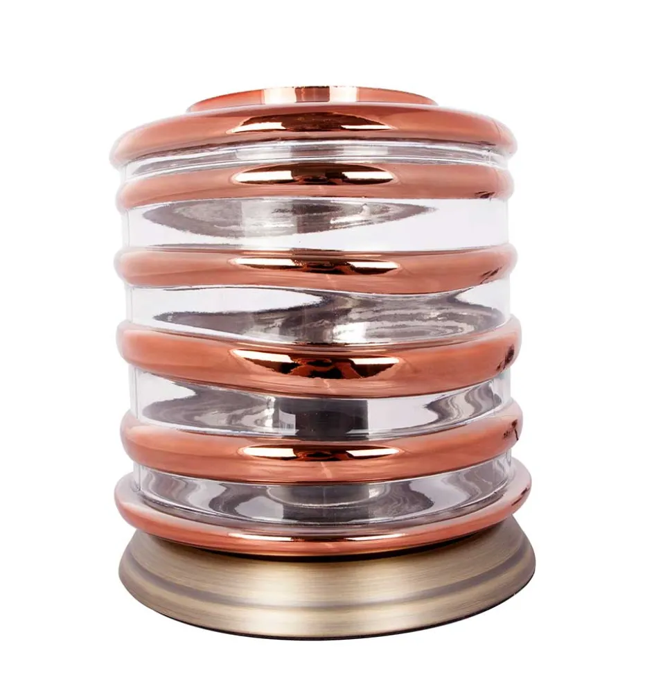 - Kunstvolle Tischleuchte in Kupfer- und transparent Champagnerfarben
