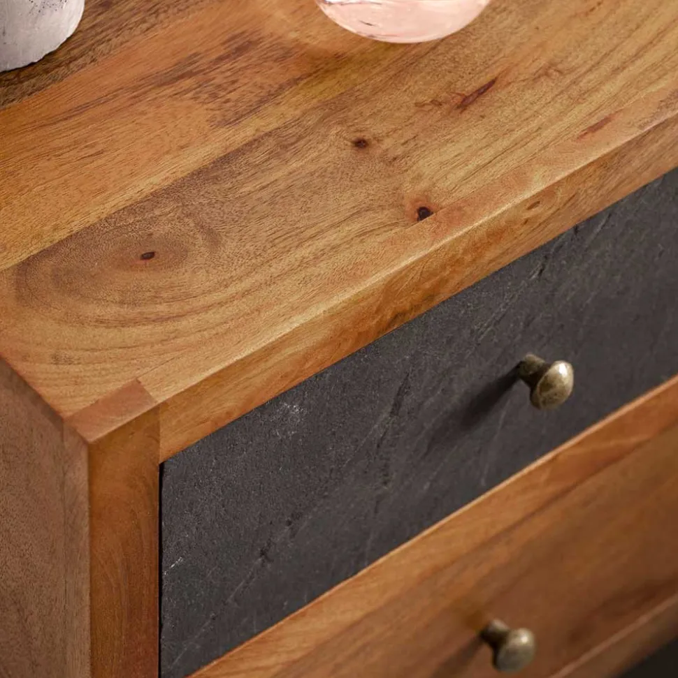 - Die Farbkombination aus Anthrazit und Mangoholz Naturfarben macht diese Kommode zu einem echten Hingucker