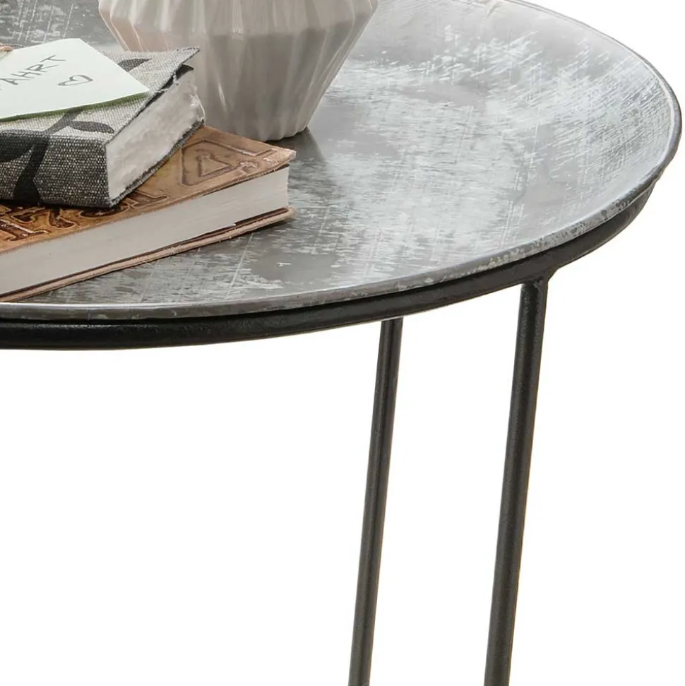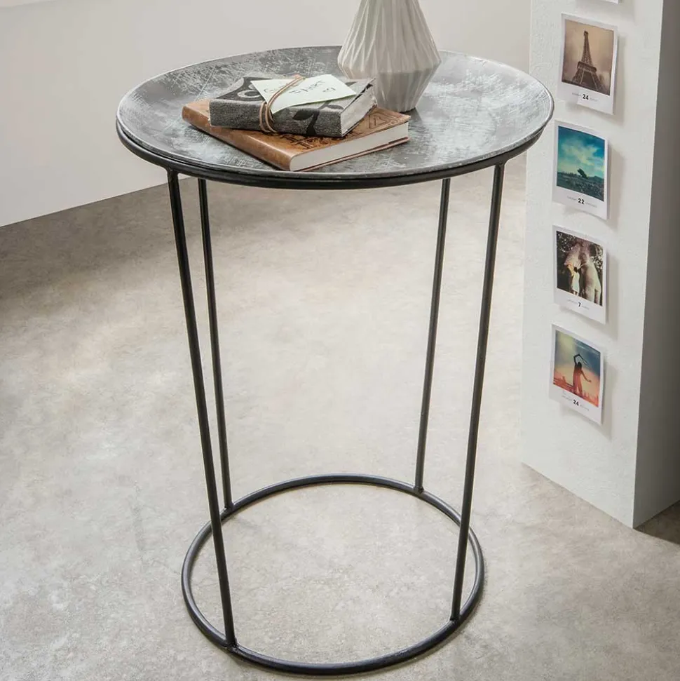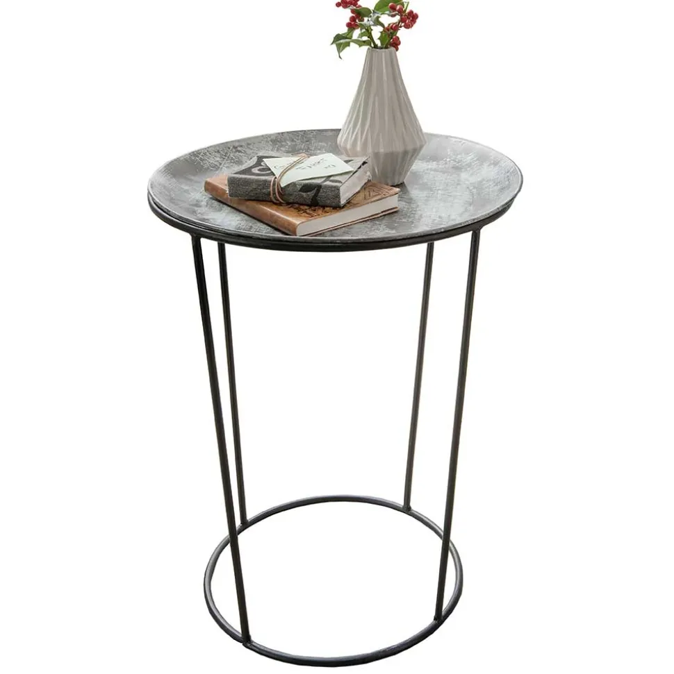 - Ansprechender Beistelltisch in Zinkfarben und Mattschwarz