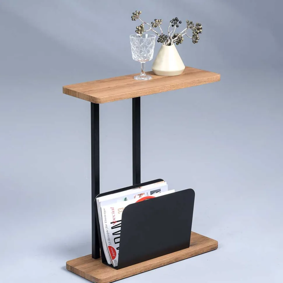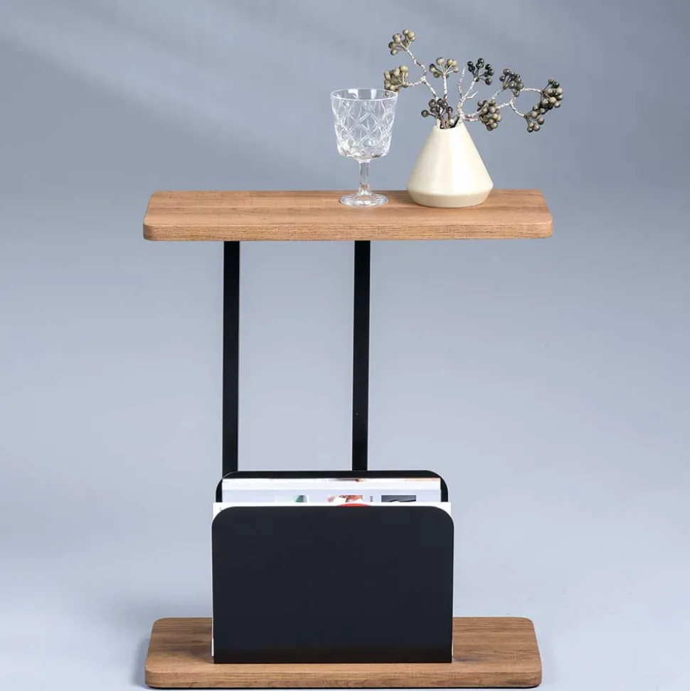- Funktioneller Beistelltisch in Eichefarben und Schwarz
