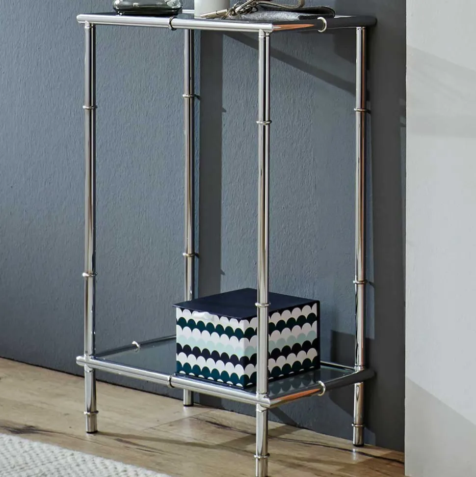 - Attraktiver Konsolentisch in Chromfarben und Transparent