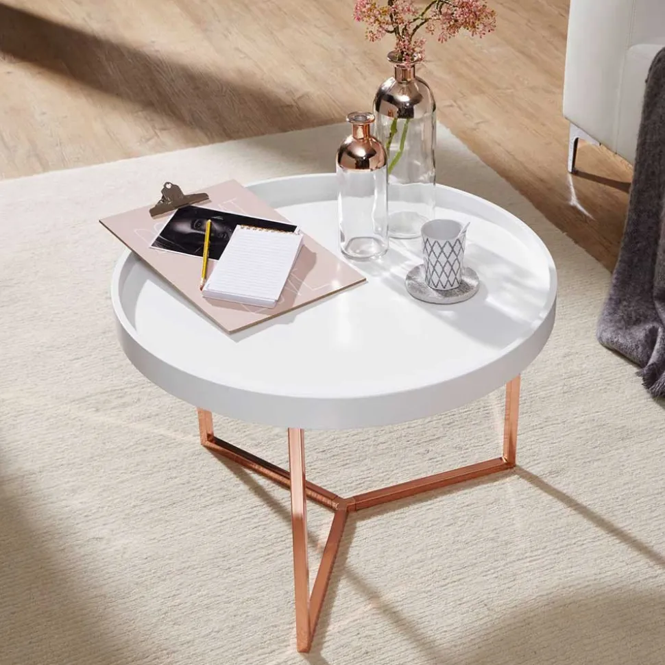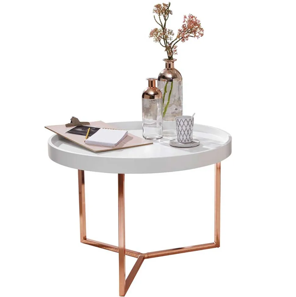 - Eleganter Beistelltisch in Weiß und Kupferfarben