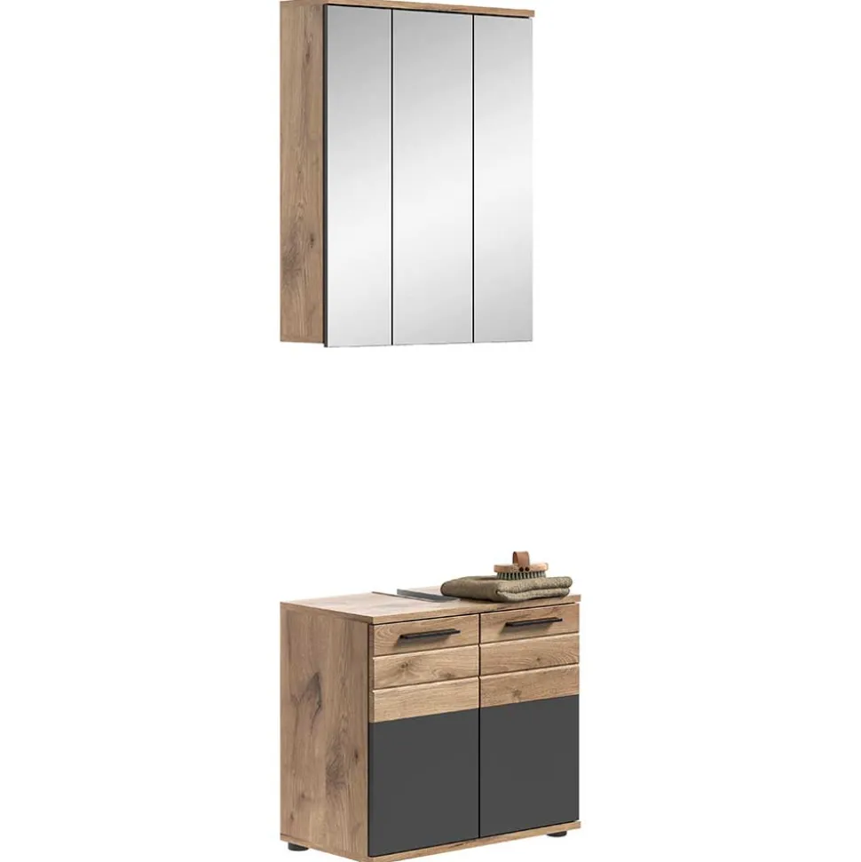 - Klasse Badmöbel Set in Wildeichefarben und Grau