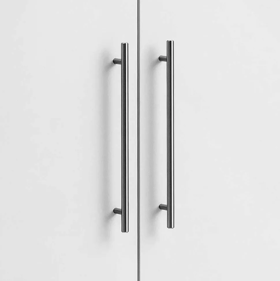 - Robuste Stangengriffe aus Metall in Silberfarben