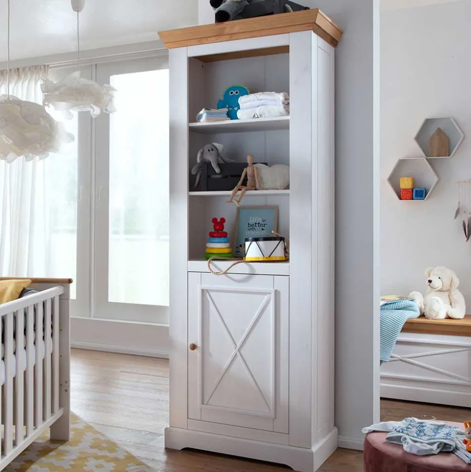 Mit Außenmaßen von 79 cm in der Breite, 200 cm in der Höhe und 42 cm in der Tiefe bietet das „Envicron“ Standregal ausreichend Stauraum, um für Ordnung im Kinderzimmer zu sorgen.