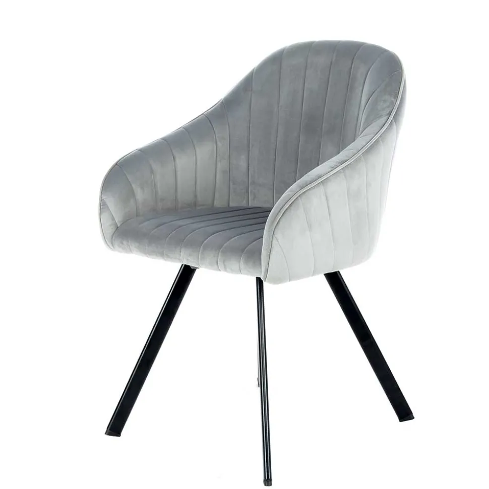 Gehüllt in einen anschiebsamen, silber-grauen Samtbezug aus 100% Polyester, bietet „Ashento“ eine Oberfläche, die nicht nur die Augen verzaubert, sondern auch den Tastsinn auf eine Reise der Sanftheit und des Luxus mitnimmt. Samt, bekannt für seine geschmeidige Textur und tiefen Farben, steht für Eleganz und Komfort. Der Bezug ist nicht nur angenehm anzufassen, sondern auch strapazierfähig und leicht zu pflegen, was den Stuhl zu einem langlebigen Begleiter in Ihrem Zuhause macht.