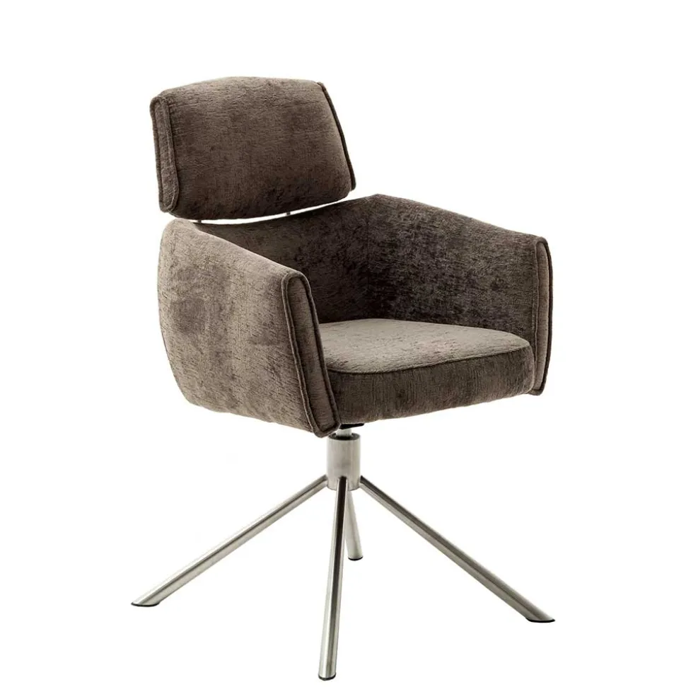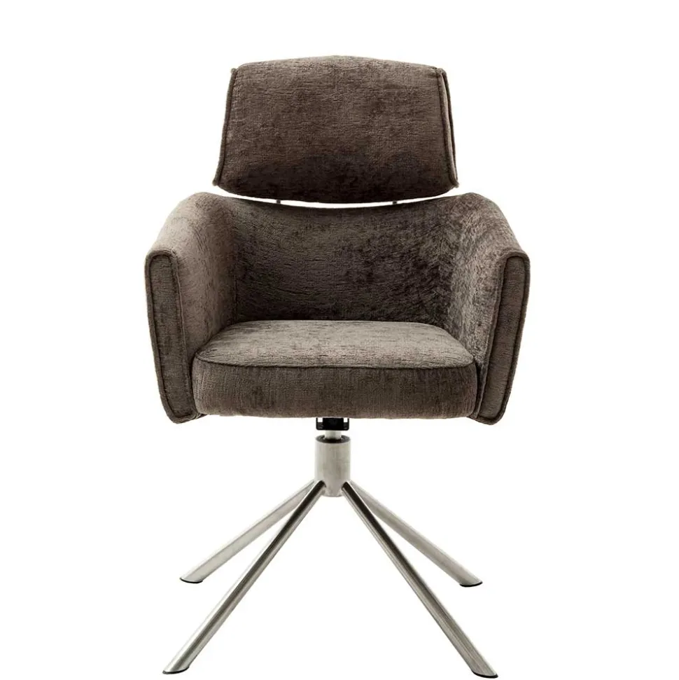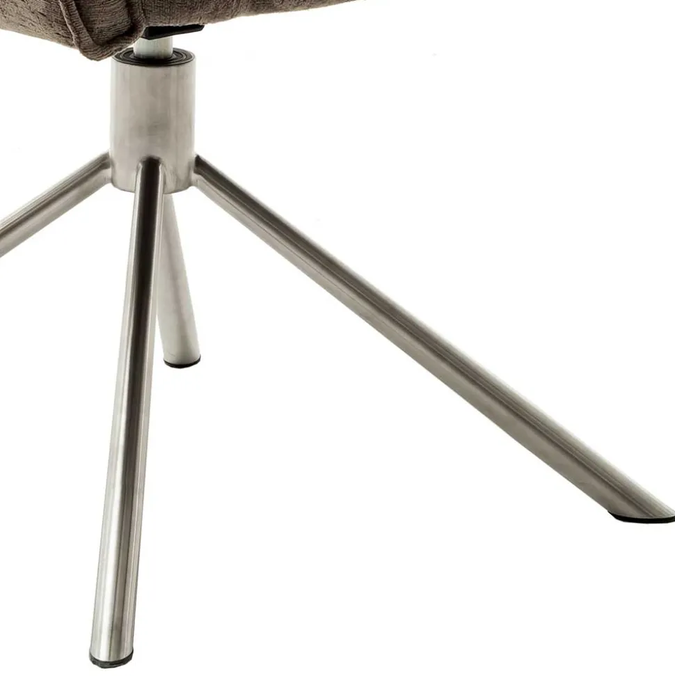 Das abgespreizte Gestell aus gebürstetem Edelstahl verleiht dem Stuhl Stabilität und eine edle Optik. Darüber hinaus ist der Stuhl um 360° drehbar und verfügt über eine praktische Nivellierung, die leichte Bodenunebenheiten ausgleicht. Mit einer maximalen Belastbarkeit von 120 kg ist der „Arjama“ robust und langlebig.