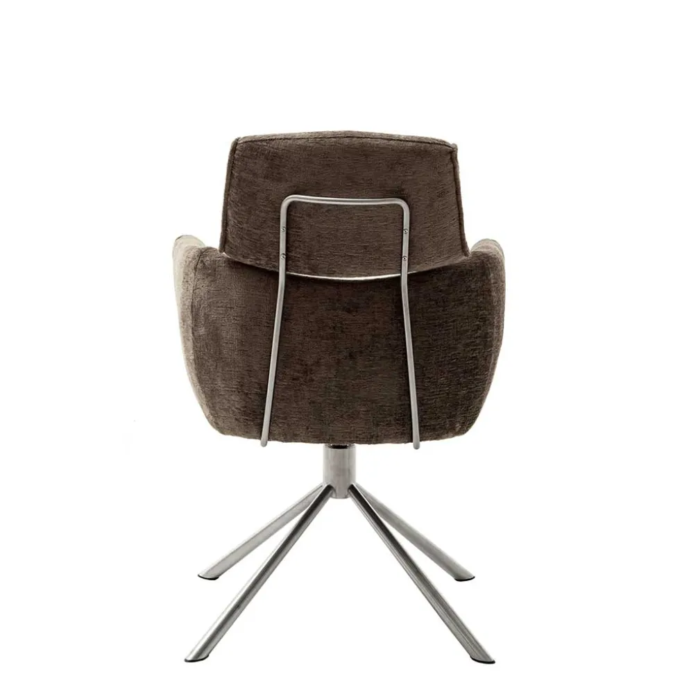 „Arjama“ besticht durch sein modernes Design und die hochwertige Verarbeitung aus Webstoff und Metall. Der weiche Webstoffbezug in Braun besteht aus 100% Polyester und verleiht dem Stuhl einen attraktiven Vintage-Effekt. Webstoff ist bekannt für seine Strapazierfähigkeit und Langlebigkeit, was ihn ideal für den täglichen Gebrauch macht. Er fühlt sich angenehm an und ist gleichzeitig pflegeleicht – perfekt für viel genutzte Möbelstücke.