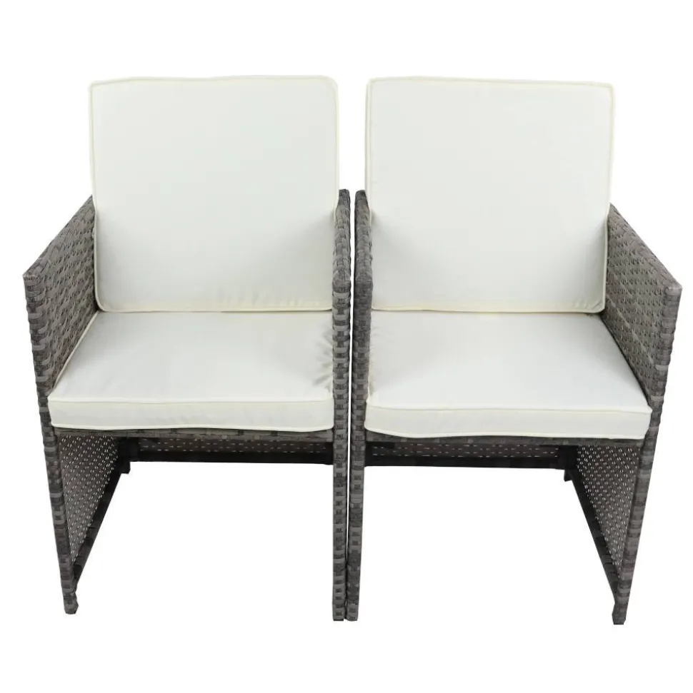 Klare Linien, harmonische Farben und eine zurückhaltende Eleganz prägen das Design dieses Gartenstuhl-Sets. Grau und Weiß fügen sich wunderbar in jede Umgebung ein – ob moderner Außenbereich, klassischer Garten oder eine gemütliche Terrasse. Dieses Design ist nicht nur zeitlos, sondern auch ein echter Blickfang, der Ihre Gäste begeistern wird. Modernes Design bedeutet hier nicht nur Schönheit, sondern auch eine unglaubliche Vielseitigkeit, die Ihnen alle Freiheiten in der Gestaltung Ihres Outdoor-Bereichs lässt.