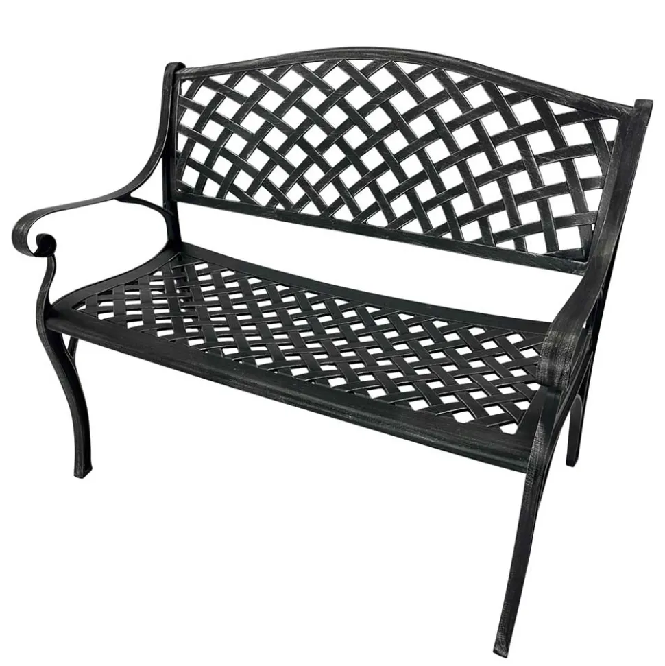 Die Bank ist mit einer speziellen, rostfreien Lackierung im Antiklook versehen. Diese Lackierung schützt die Bank nicht nur vor Witterungseinflüssen, sondern verleiht ihr zugleich eine edle, antike Optik. Der Antiklook sorgt für eine charmante Patina, die sich mit der Zeit noch weiter entwickeln kann und der Bank eine zusätzliche Vintage-Würde verleiht. Die Lackierung ist besonders pflegeleicht und lässt sich leicht reinigen, sodass Ihre Bank auch nach Jahren noch wie neu aussieht.