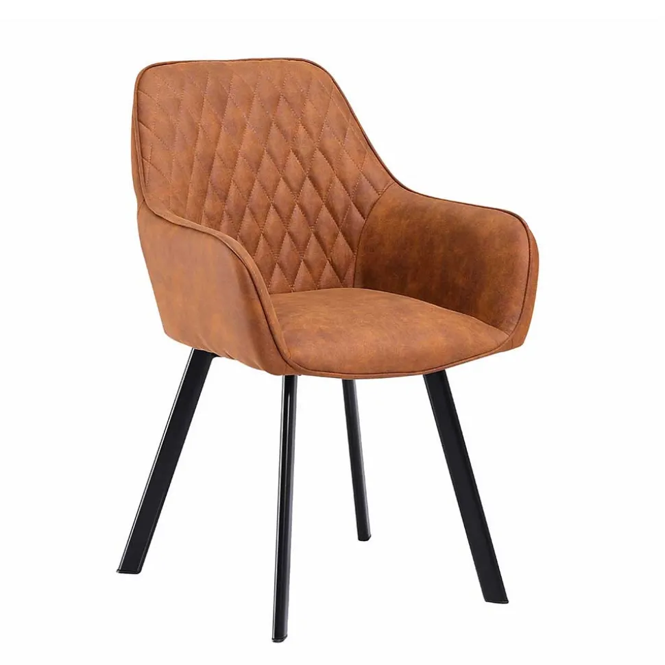 Ein stilvoller Polsterstuhl, der keine Wünsche offenlässt: Der „Dronja“ ist die perfekte Wahl für alle, die Wert auf Ästhetik, Komfort und Qualität legen. Dieser Stuhl bringt modernes Design in Ihr Zuhause und setzt in Küche oder Esszimmer elegante Akzente. Die Kombination aus cognac-braunem Bezug und dem stabilen schwarzen Edelstahlgestell verleiht jedem Raum ein gehobenes Ambiente und zeigt Stilbewusstsein.