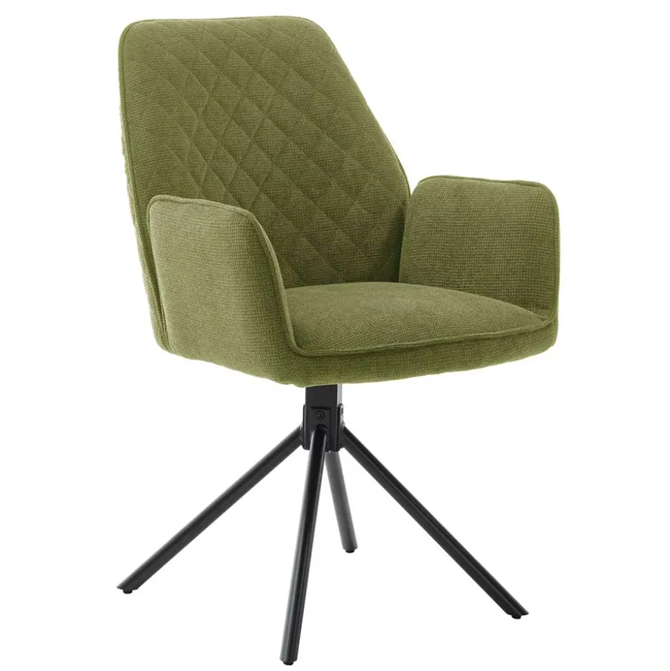 Die Maße des Stuhls – 60 cm Breite, 89 cm Höhe und 64 cm Tiefe – bieten eine komfortable Sitzgelegenheit. Mit einer Sitzhöhe von ca. 50 cm und einer Sitztiefe von 44 cm sowie einer Breite von 43 cm ist dieser Stuhl ideal, um auch längere Abende gemütlich am Esstisch zu verbringen. Die Schaumstoffpolsterung und die dekorativ in Rautenoptik gesteppte Rückenlehne erhöhen den Sitzkomfort, während die seitlich angesetzten Armlehnen zusätzliche Unterstützung bieten.