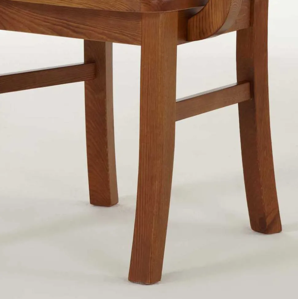Die Oberflächen der Stühle sind in edlen Bernsteinfarben gebeizt und lackiert, wodurch sie nicht nur eine ansprechende Optik erhalten, sondern auch vor Abnutzung geschützt sind. Diese Behandlung hebt die natürliche Schönheit des Holzes hervor und sorgt für eine pflegeleichte, langlebige Oberfläche.