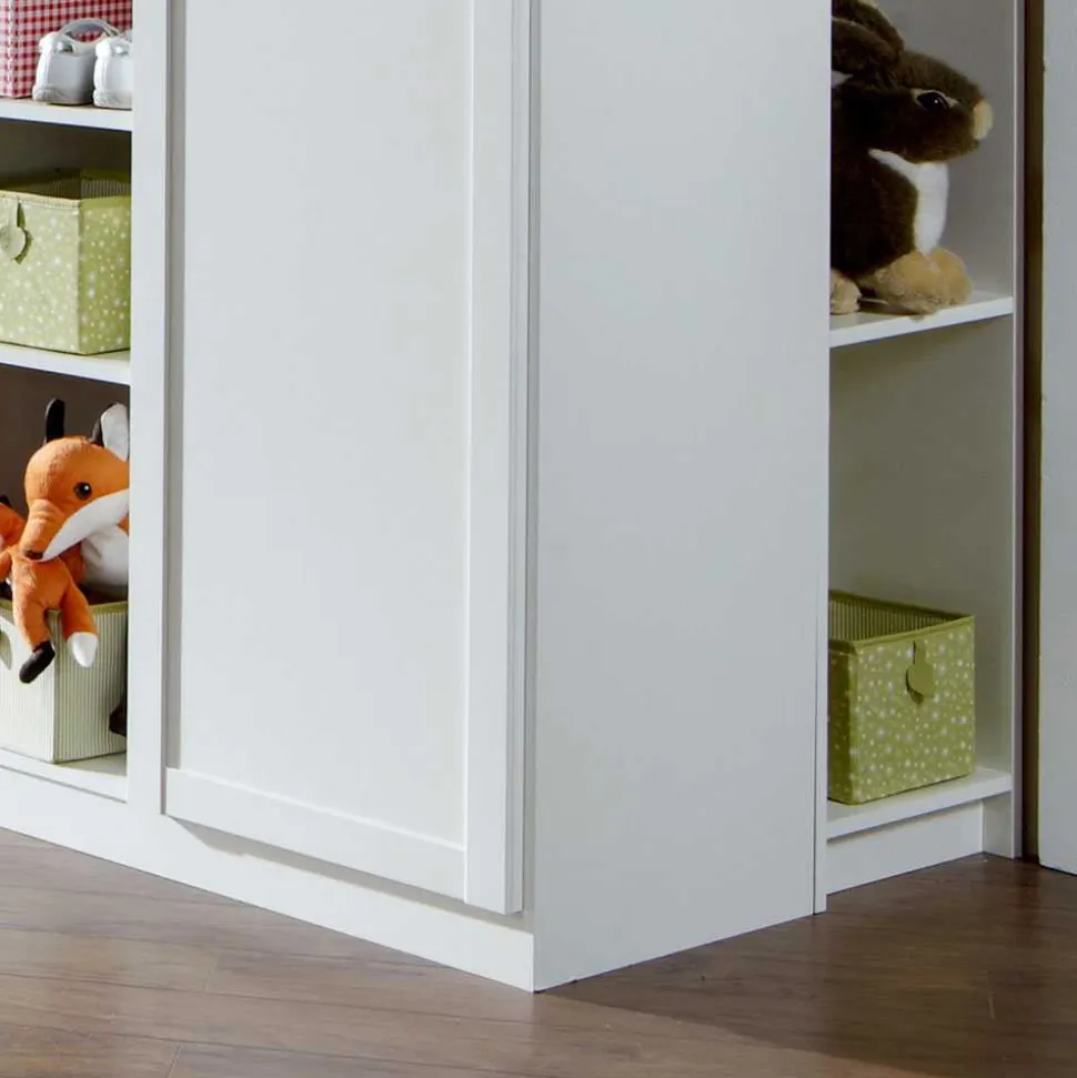 Weiße, folierte Oberflächen sorgen nicht nur für die moderne und frische Optik, sondern machen das Möbelstück besonders pflegeleicht. Kleine Missgeschicke lassen sich mühelos abwischen – ideal für den Familienalltag. Dank der hochwertigen Folierung zeigt sich die Oberfläche widerstandsfähig gegen Feuchtigkeit und überzeugt mit hoher Kratzfestigkeit. Die rund gearbeiteten Korpuskanten ergänzen das sichere und kindgerechte Design zusätzlich.