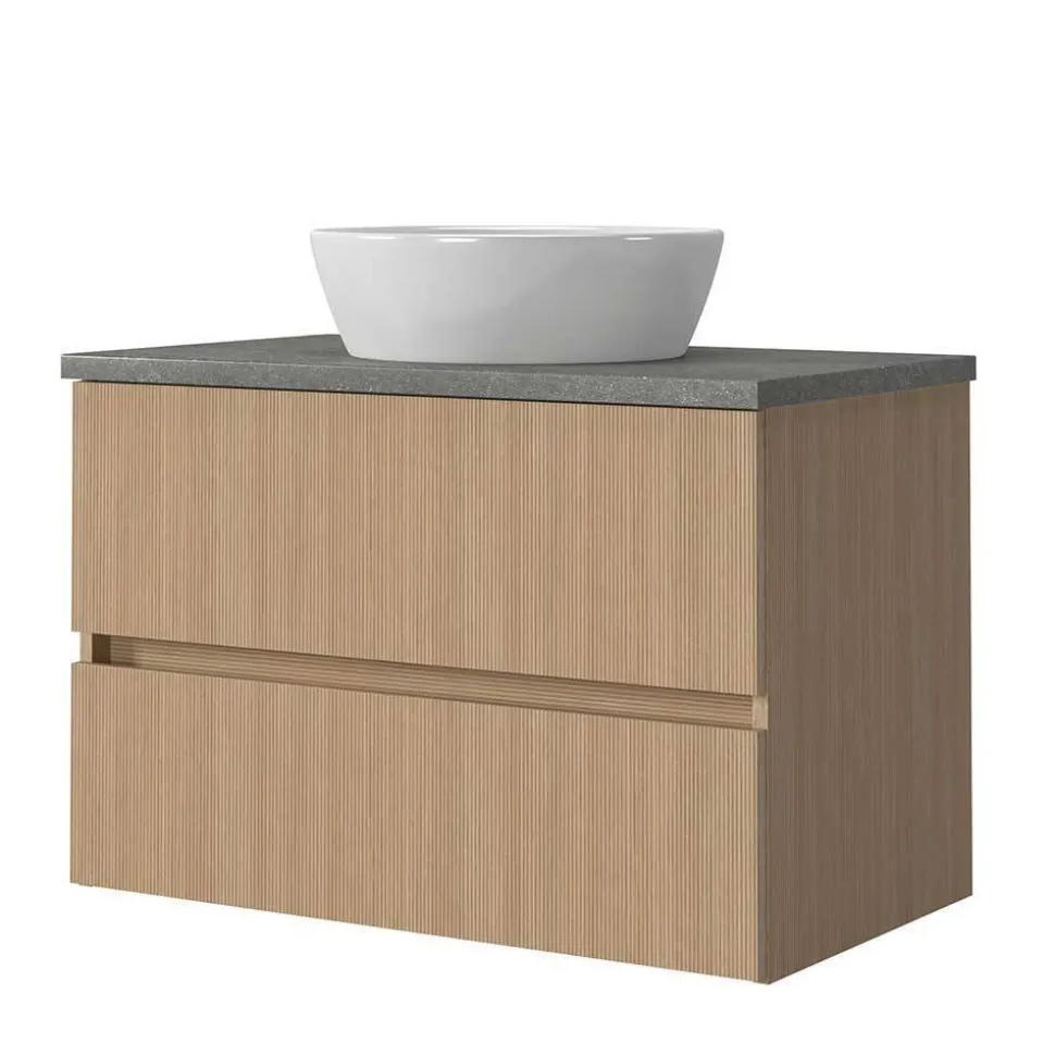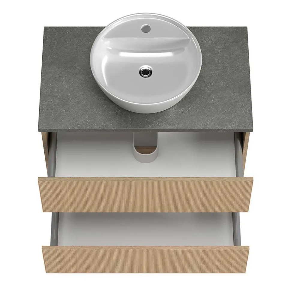 - Elegante Badmöbel in in Eiche hell und Dunkelgrau