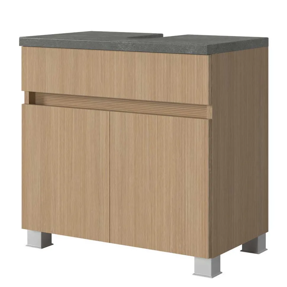 Waschbecken-Unterschrank: Der Waschbecken-Unterschrank (60x54x35 cm) kommt mit einem vorgefertigten Siphonausschnitt und zwei Türen, die für eine einfache Installation sorgen. Mit Füßen erreicht der Waschbecken-Unterschrank eine Höhe von 59 cm. Gewicht: ca. 13,2 kg.