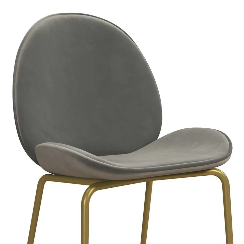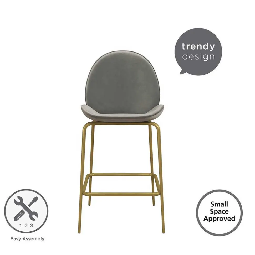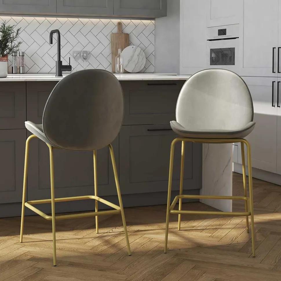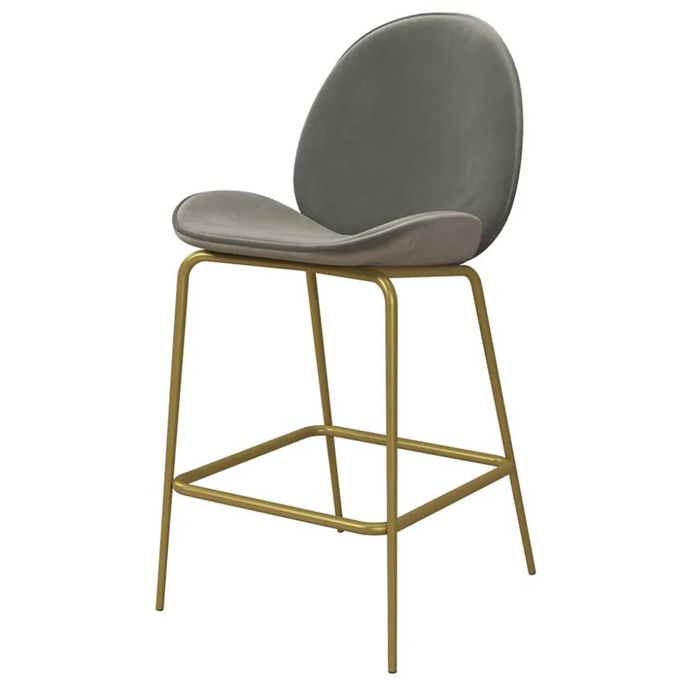 - Dieser zeitlose Barhocker in Hellgrau und Messingfarben ist ein echter Hingucker