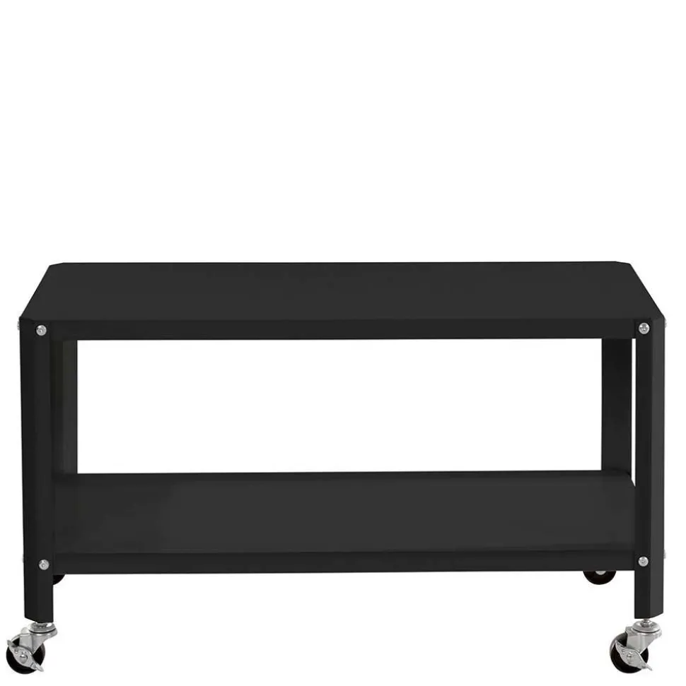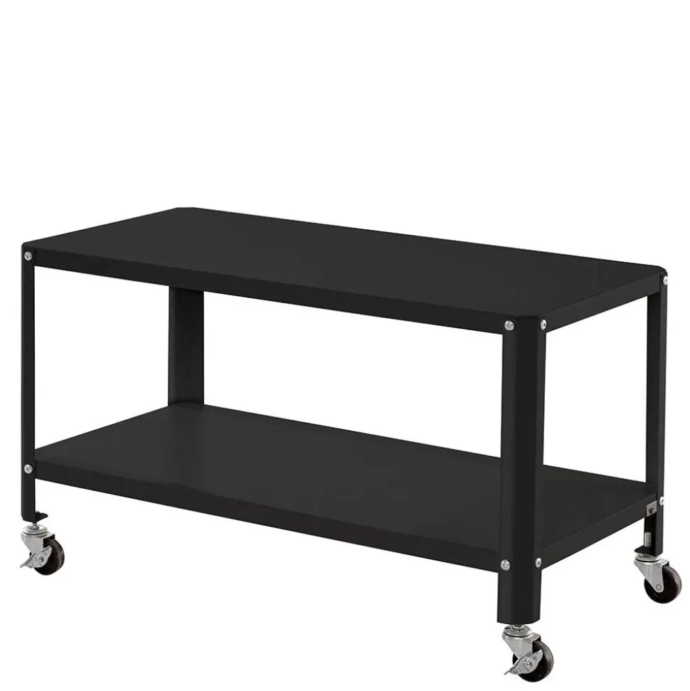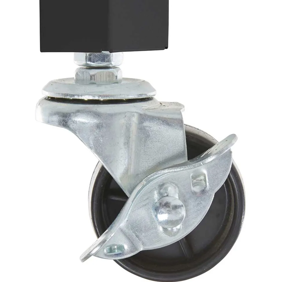 - Vier harte Kunststoffrollen, zwei mit Feststellbremse ausgestattet