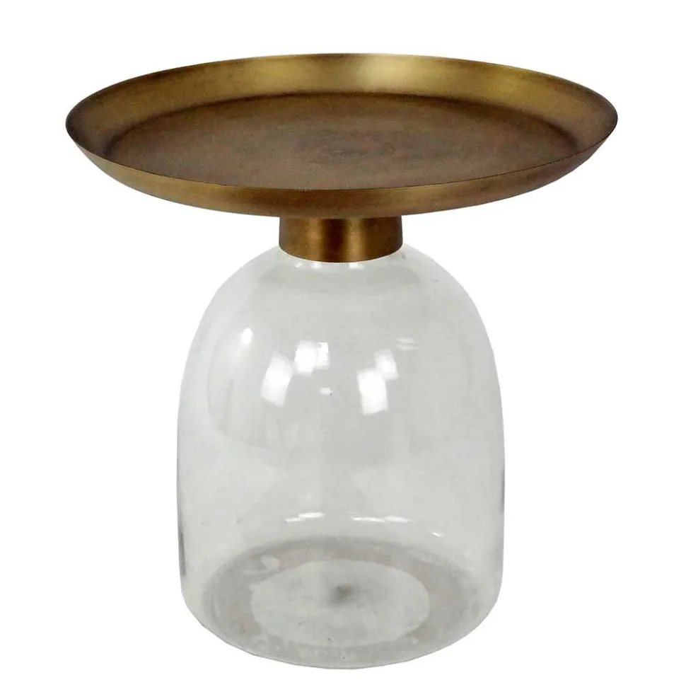 - Stilvoller Beistelltisch in Altmessingfarben und Transparent