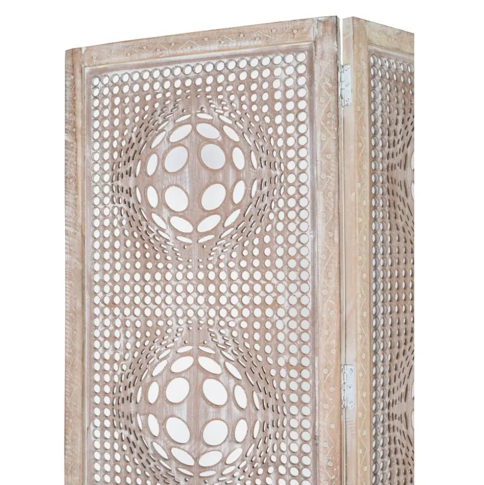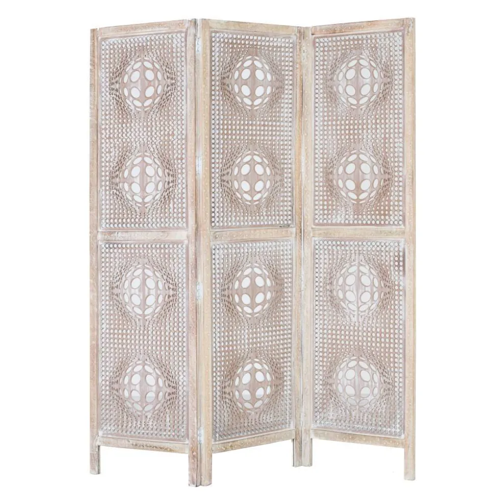 Der Paravent „Siao“ vereint kunstvolle Handwerkskunst mit einem Hauch von Bohème-Flair. In sanftem Altweiß gehalten und mit filigranen Ornamentmustern verziert, fügt er sich harmonisch in verschiedene Wohnstile ein. Ob als dekorativer Raumteiler, Sichtschutz oder stilvolles Accessoire – dieses Schmuckstück bringt Leichtigkeit und Charme in Ihre Räume. Durch die liebevolle Handbearbeitung ist jedes Exemplar ein Unikat, wodurch Ihr Zuhause eine ganz persönliche Note erhält.