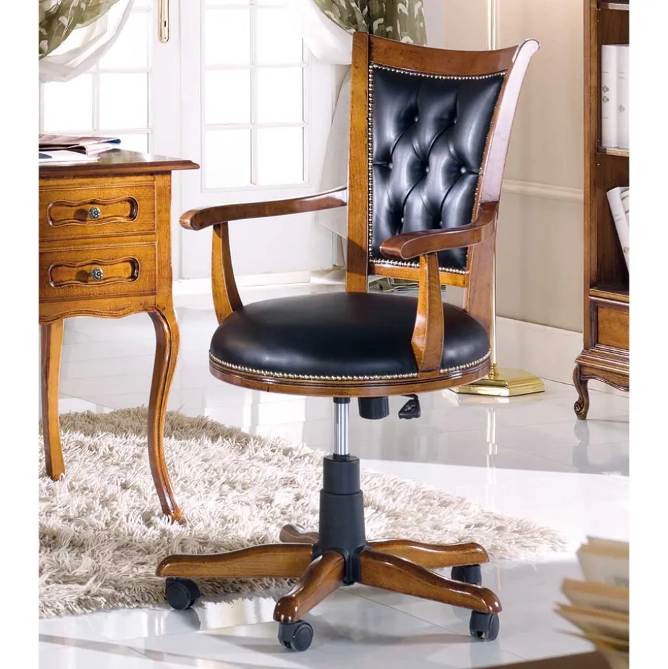 - Luxuriöser Bürostuhl in Schwarz und Nussbaumfarben