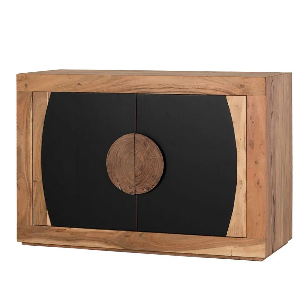 - Eindrucksvolles Sideboard in Schwarz und Akaziefarben