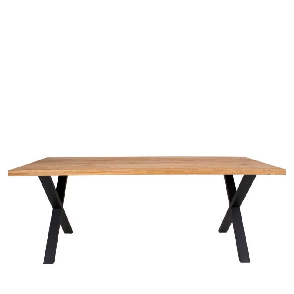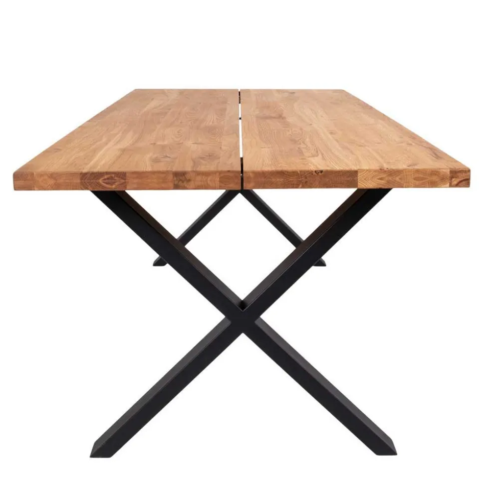 - Tischplatte aus massivem Eichenholz mit lebhafter Maserung, mittig geteilt