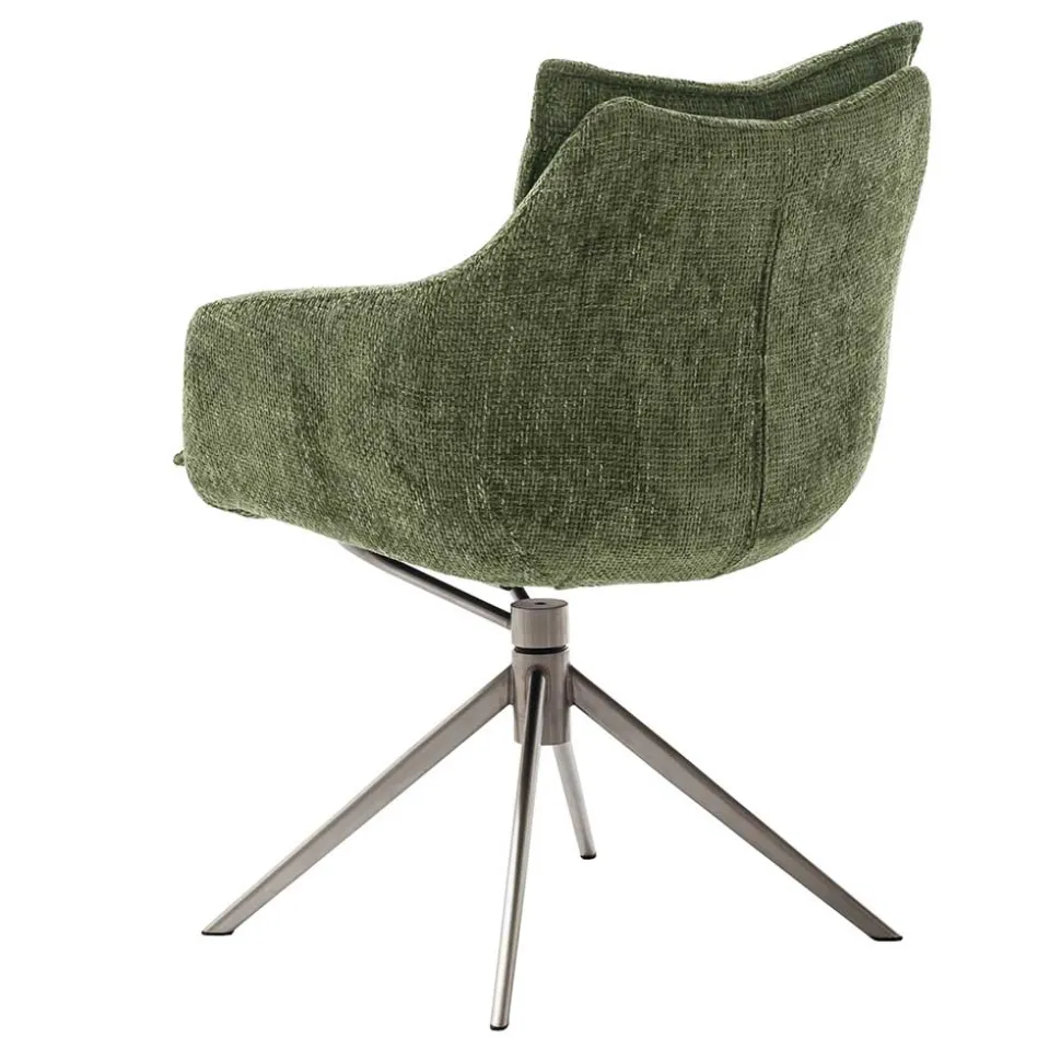 - Ein komfortabler Stuhl in Edelstahlfarben und Oliv Grün für ein modernes Zuhause
